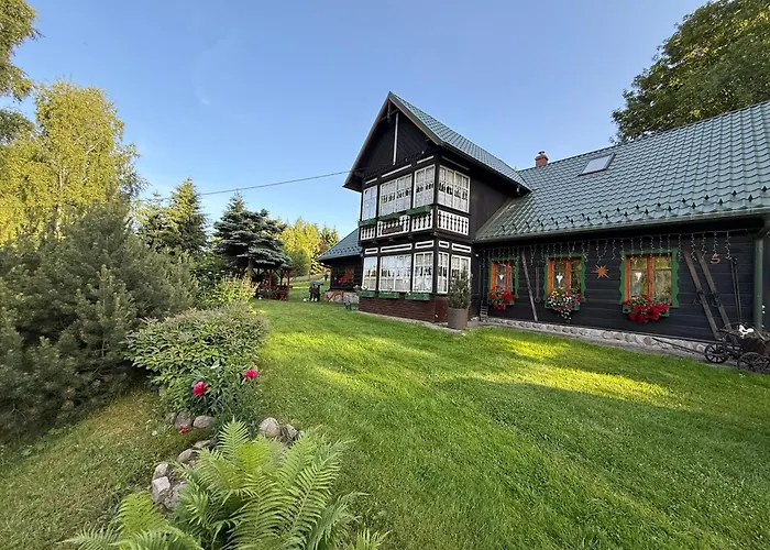 Dom Szklarski Kamien Szklarska Poreba is situated steps away from the Biala Polana meadow, featuring such comforts as Wi-Fi and complimentary private parking. Located approximately 10 minutes' walk from the Church of St. Maximilian Maria Kolbe, this Szklarska Poreba villa boasts a terrace with views of the mountain.